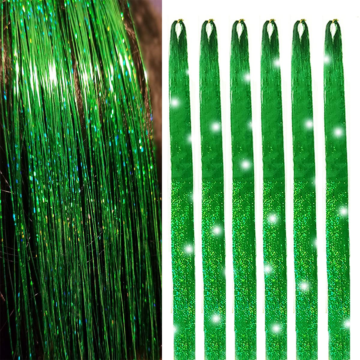 Amazon Com Tototoo Green Hair Tinsel 1500 Strands Fairy Hair 44 Inch Glitter Hair Tinsel Strands Kit Heat Resistant Sparkling Shiny Hair Tensile Extensions Bling Bling For Party Green Color 1500 Strands Beauty